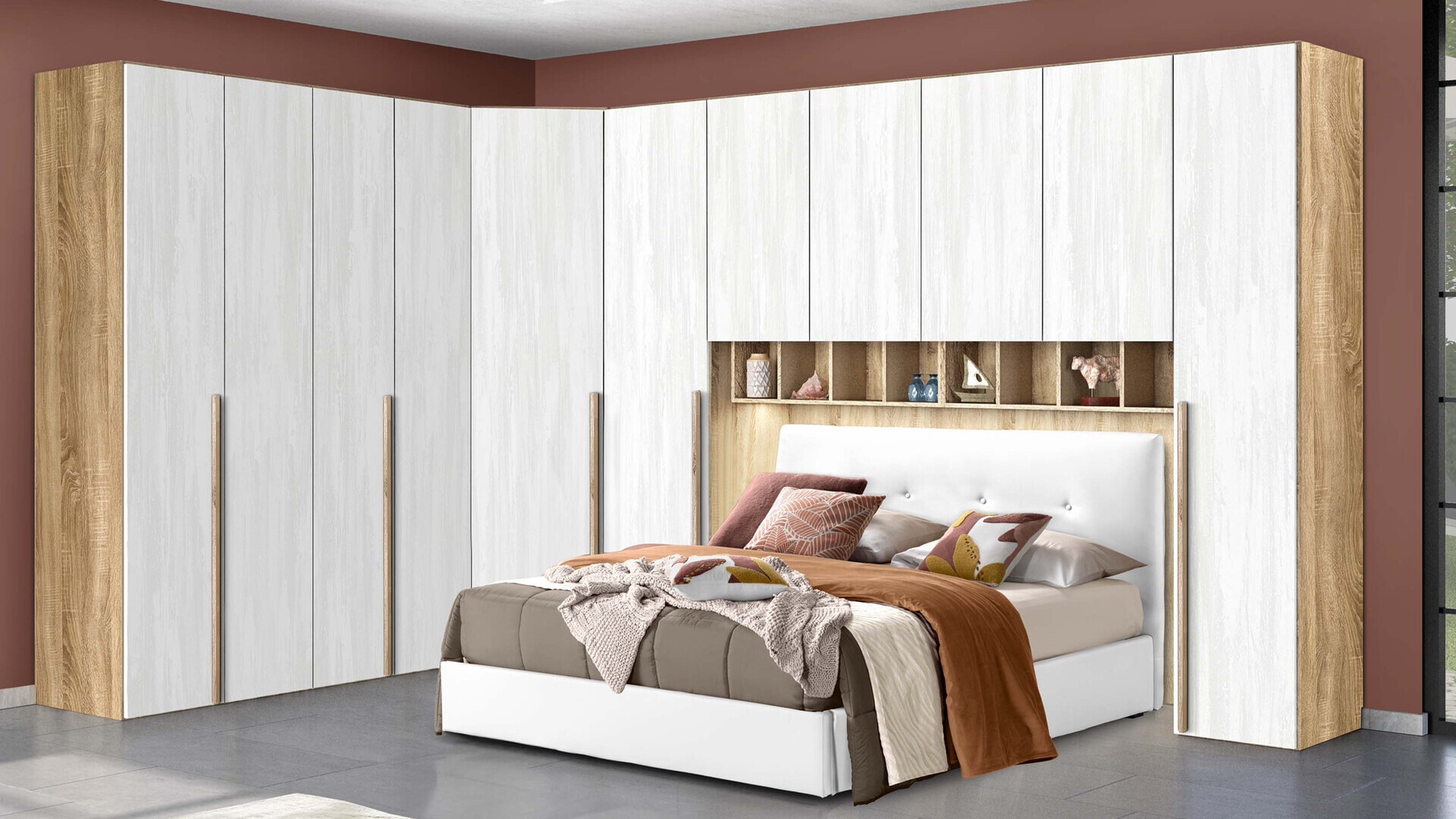 - Considera l’altezza: un armadio più alto permette di sfruttare i ripiani alti per il cambio stagione o per le coperte ingombranti.